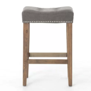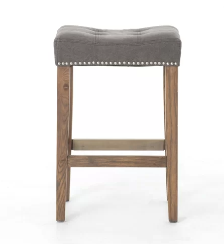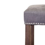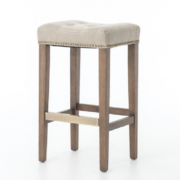 Fill your dining space with the exquisite artisan design of the Belham Louis handcrafted counter stool. The soft linen seat features classy French tufting and antiqued brass nailhead trim. The hand-finished Vintage Oak base balances clean lines with efficient woodcraft for a beautiful contemporary appeal.