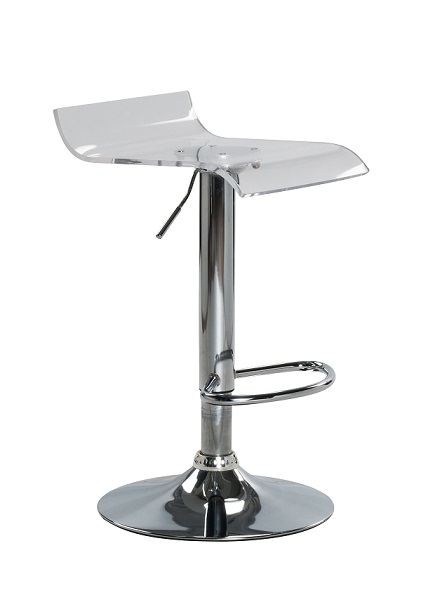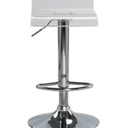This modern bar stool has a low back and a metal pedestal as its base. It is upholstered with a swivel leg and its height is adjustable. Assembly is required. Perfect for living and dining areas as well as outdoor areas.