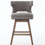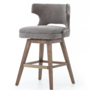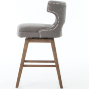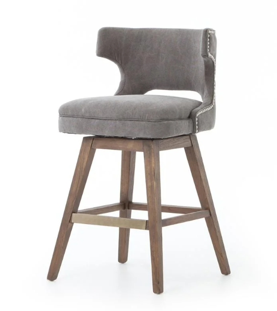 Enjoy the Task Swivel Counter Stool – Dark Moon Canvas in your home today! Swivel while you swizzle. Soft grey canvas with pewter nail heads, a modern wing shape, and splayed nettle wood legs bring contemporary presence to the counter.