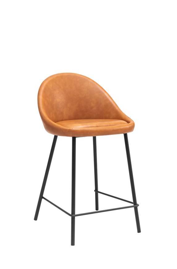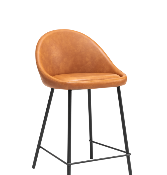 Round out your kitchen by pulling up this arched-back stool around your counter or bar. Upholstered in faux leather for a rustic modern vibe, it has the look of leather but is easy to clean with a damp cloth. This stool’s seat and back are padded with foam for an inviting look, and its back curves around to the front of the chair to envelop whoever’s sitting in it. Slim, tapered black metal legs support this design, which features a footrest for you to perch your feet.